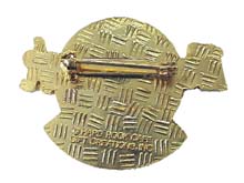 3番は、メキシコ各都市で出ていたものの1つ(Polished Back、つるつる仕上げ)。 4番、5番は、HI−TAI というタイのメーカーで、バンコクを始め、東南アジアのいくつかの都市でこのバリエーションを見る事ができました。 そして最近(99年夏)登場したのが6番のタイプ。 最近の中南米のピンって、このメーカーのピンが多いね。 ついでに、裏の止め具のタイプは、上のようなセーフティーバータイプのものを“CLASP”、そして下で説明している画鋲の針に蝶タックがついているものを“TAC”と呼んでいます、覚えときましょ。