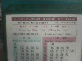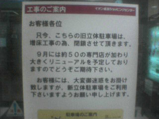 今月の4日に信用金庫主催のゴルフがありました。 錦糸町支店前に朝5時45分という千葉県民にはキビシイ集合時間でしたが、前日の夜から都内に宿泊して参加してきました。 行きのバスは茨城県のゴルフ場まで(常磐道かな?)一直線という感じだったのに、夕方にゴルフ場を出発して20分、ふと通り過ぎていく電柱の住所表示を見ると「成田市」と書かれているのです。 (このまま東京まで連れていかれなくても、ココで降ろしてくれた方がメチャメチャ家に近いよ)と瞬時に判断した私は運転手さんに直訴、成田の駅には行かないけれど、高速(東関道)に入る前に市内の適当なところで降ろしますと連れて行かれた場所が、このイオンのショッピングセンターだったのです。